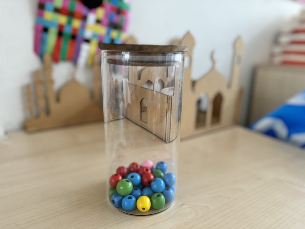Met ons kralensysteem belonen we klasbreed gewenst gedrag. Leerlingen kunnen met gewenst gedrag onverwachts een kraal krijgen. De klas spaart de kralen in een pot voor een gezamenlijke beloning.